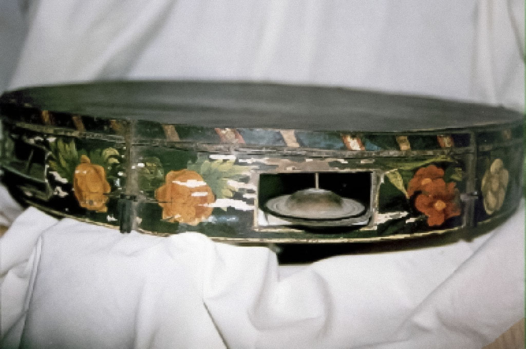 - Tambourine used for divination, with lines marked on the underside of the skin, and with cowrie shells and 'Aristotle's lanterns' (sea urchin jaws), whose position on the lines was used for making readings.