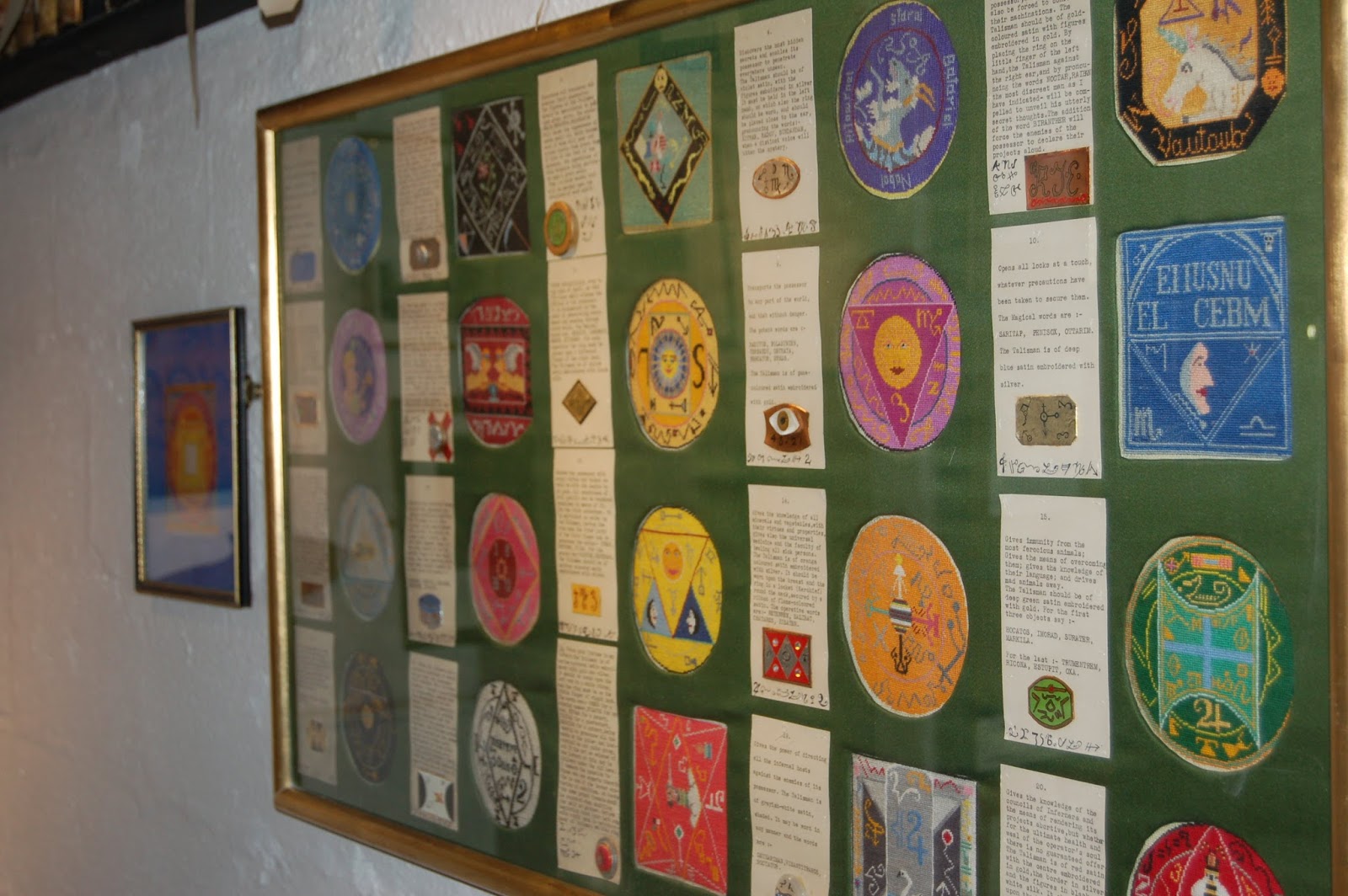 Arguably, one of the most interesting displays in the Museum is the collection of talismans which were created by Mrs A Dodsworth based on the 18th century book or grimoire "The Black Pullet". They have been in the Museum since the 1960s and are now displayed near herbs and healing on the way to the wise woman's cottage (see photo below).