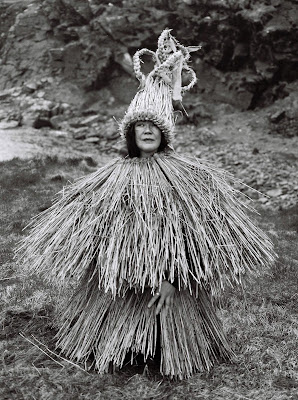 “Skekling is an old Shetland folk tradition. A Skekler is the name for a type of disguised person dressed in a distinctive straw costume; it is a variant of the term ‘guiser’. Skeklers would go round the houses at Halloween, New Year, and turn up at weddings in small groups performing fiddle music in return for food and drink.”