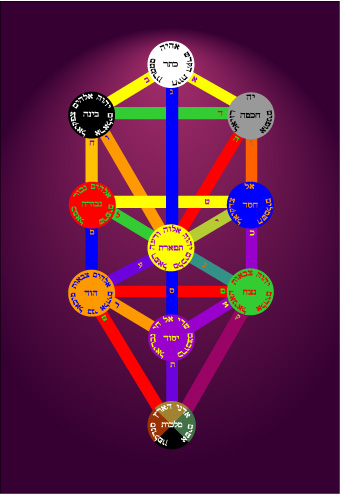 The ten spheres or Sephiroth connected by the 22 paths of the Hebrew alphabet, form the Tree of Life, the central glyph of the Qabalah. The Tree of Life describes the steps between mundane consciousness (represented by Malkuth - the last sphere, meaning 'Kingdom') and the divine (represented by Kether - the first sphere).