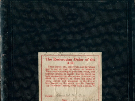 A handwritten manuscript, detailing the initiation rituals of the Order of Alpha et Omega (also known as The Golden Dawn). The content refers to the Tarot-inspired tracing board diagrams, which can be found under the Alpha Omega tag. Most likely created by the same person who created the tracing board diagrams - Frater "Fide et Amore", also known by his real name George Edwin Bance. The particular objects this manuscript refers to include: 3907, 3914, 3909, 3912, 3911, 3896, 3893, and 3895. Further scanned pages from this manuscript can be found in the aforementioned object descriptions.