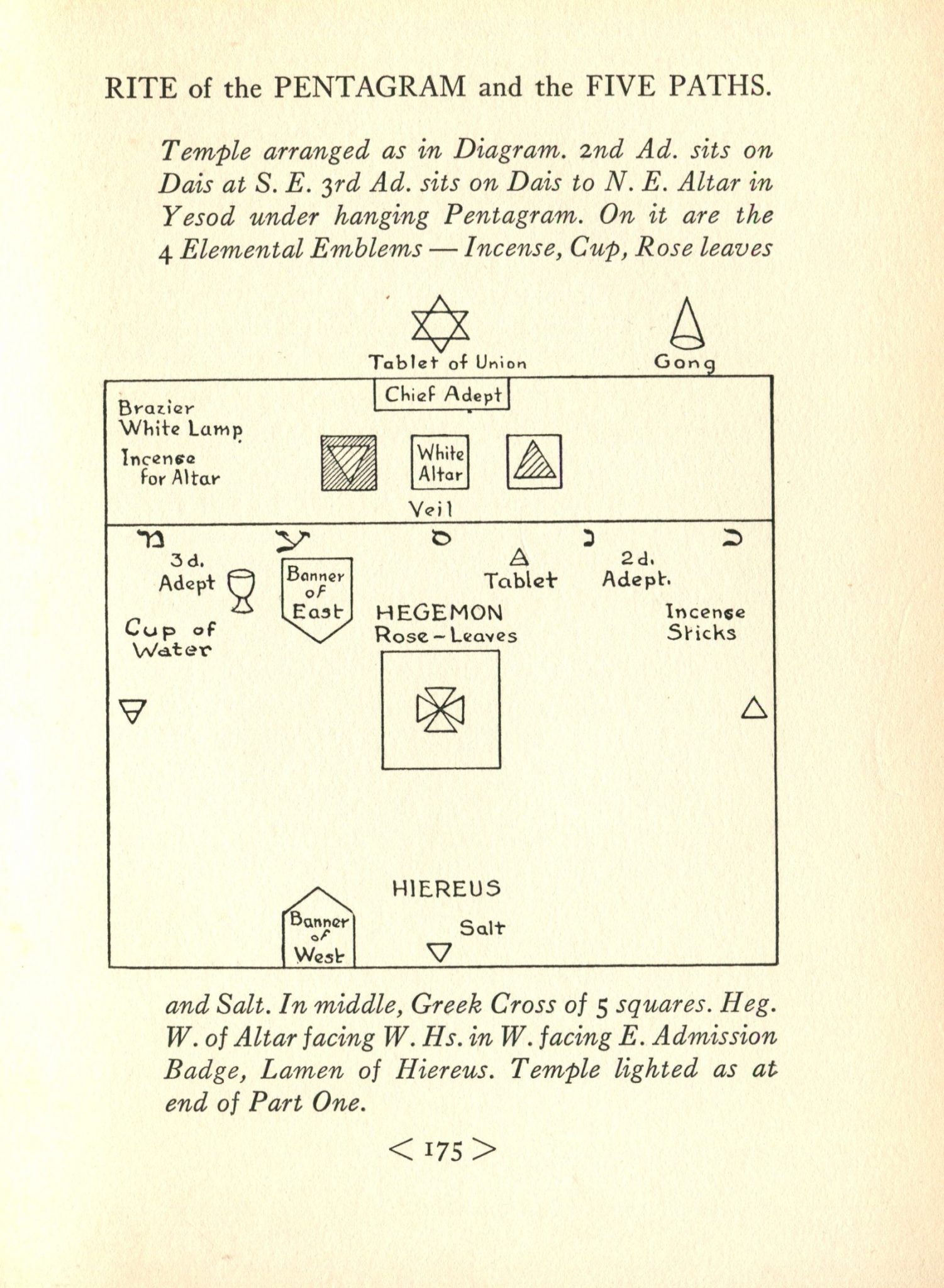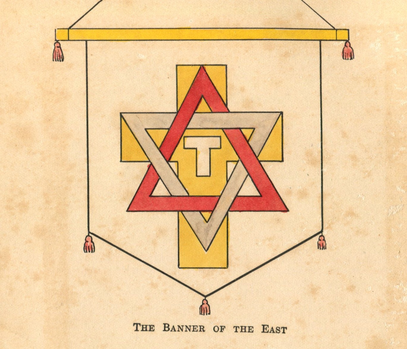 The phrase 'Hanging on Banner of East, at East.' possibly means that this kamea used to hang on the Banner of East in a Temple during the rituals of the inner order, as shown on the below two diagrams.