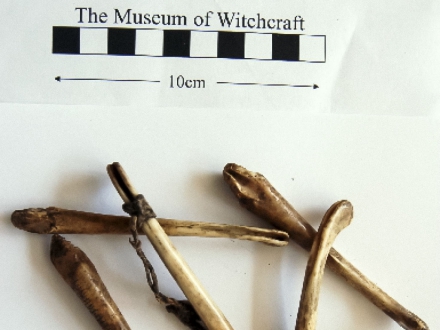 It is probable that these are the tools referred to in a label by Cecil Williamson, which reads: "A Small Collection of Bone Tools. Purchased from the E. Lovett Collection, stated as having belonged to Mary Nalder, witch or wisewoman of Stepney, London, and used by her when shaping and making wax figures for use in her spell casting operations. Acquired by E. Lovett in 1909." (But see also 499 and 1729, which are also possibilities.)