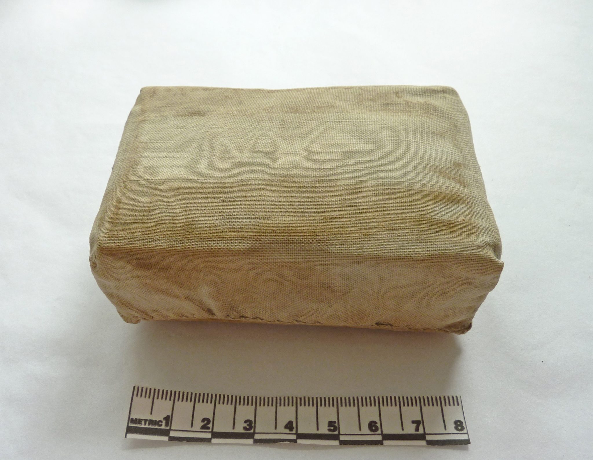 Original text by Cecil Williamson: 'The old fashioned method favoured by Cornish sea witches was to stitch a cloth covering around their get-lost boxes, this one was prepared for me by a Falmouth based sea witch.'
