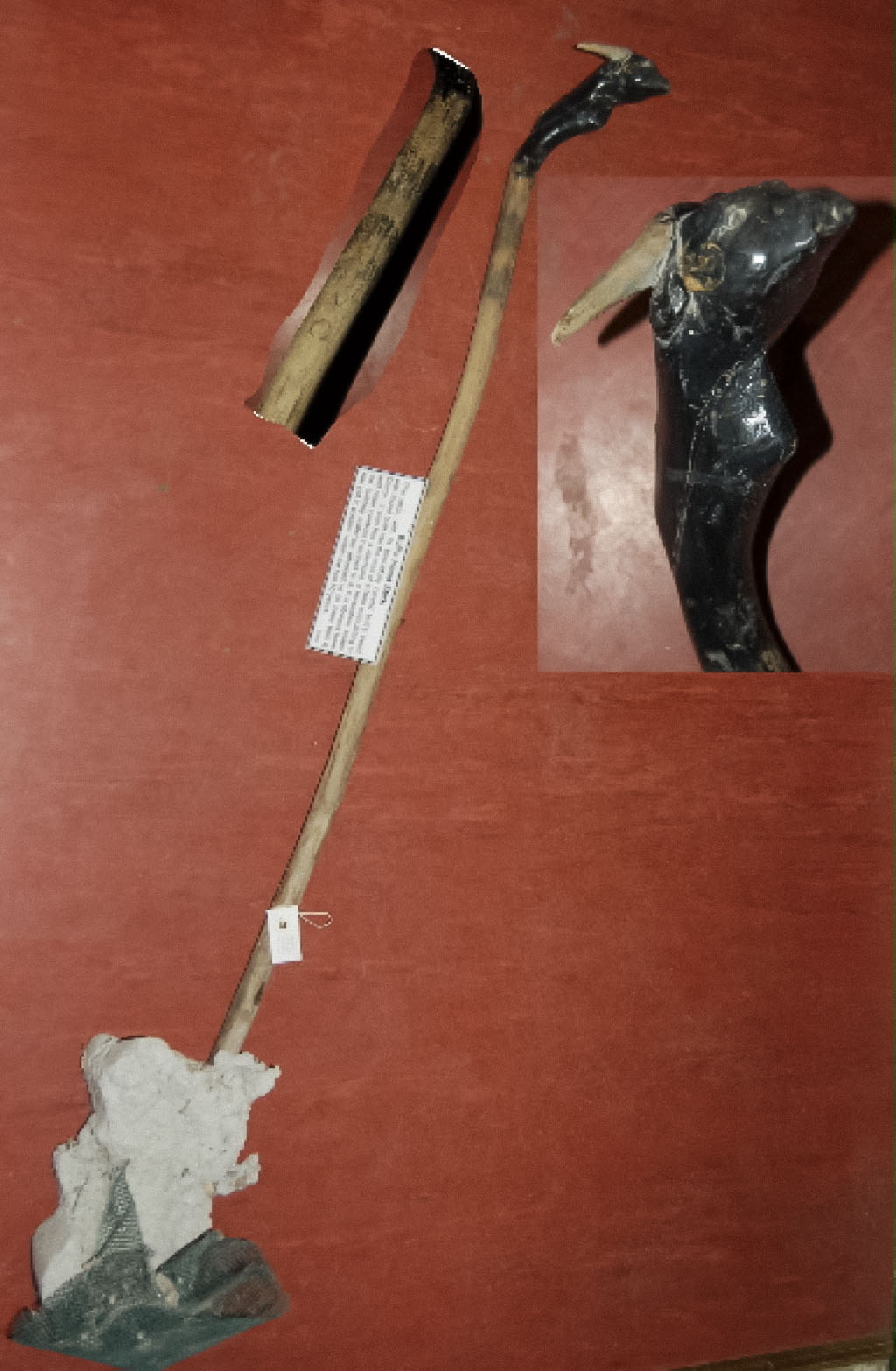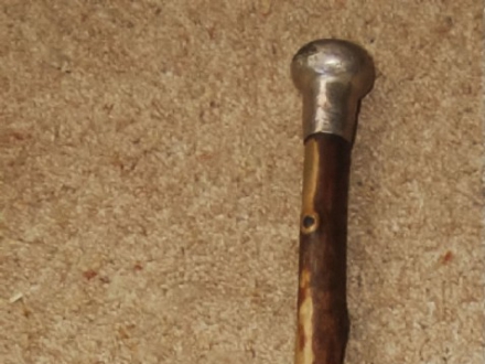 - Stick beautifully carved with a black bull's head, and faintly inscribed with symbols. Found built into the wall of a farm outbuilding.
