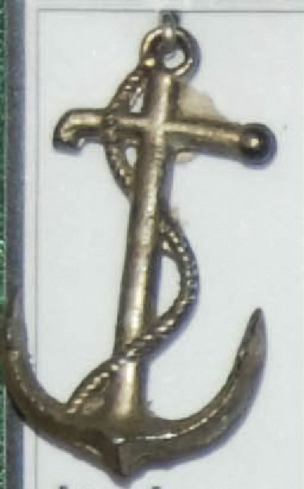 - Charm consisting of a small brass anchor with a rope wrapped round it.