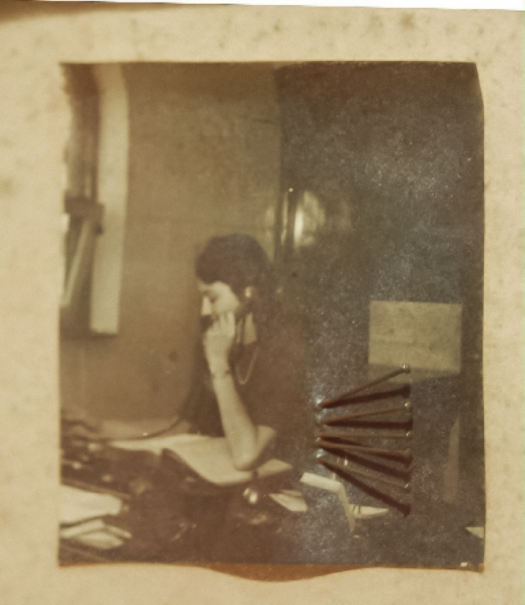 Original text by Cecil Williamson: 'This lucky find, found tucked away in the back of a local government office filing cabinet, speaks for itself. Someone had a cause to punish the nice looking lady secretary. One wonders what it was - dislike, envy, or a lover's quarrel. Liskeard, 1948.'