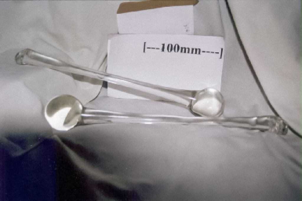 Original text by Cecil Williamson: 'The dreaded witches' glass devil' s drumsticks. Note that the end of these sticks are ragged and unfinished. It is vital that they be so. Without unfinished ends they have no magical powers and certainly would be unacceptable to any west country witch. These drumsticks are used in a wide range of magic making, such as to drum out an evil influence or to call to one urgent aid from the spirit world in times of danger or stress. They are also used in weather changing magic, such as rain making, thunderstorms, etc.