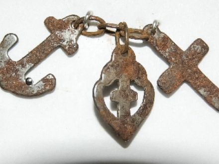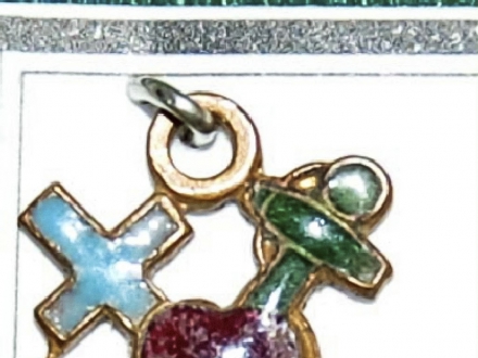 - Three round pieces of holy wafer (not consecrated), with a charm written on them, fixed to a display card with an explanation of their use in magic.
