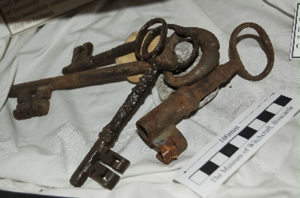 In Switzerland, for keys to have magical protecting power they must be church keys, and the end should be in the shape of a cross. It was also believed that if a vicar looked through the hole in the centre of the cross-shape during the Sunday Service, he would be able to see which members of the congregation were witches. (Information supplied by Wicca Meier-Spring of Hexenmuseum Schweiz.)