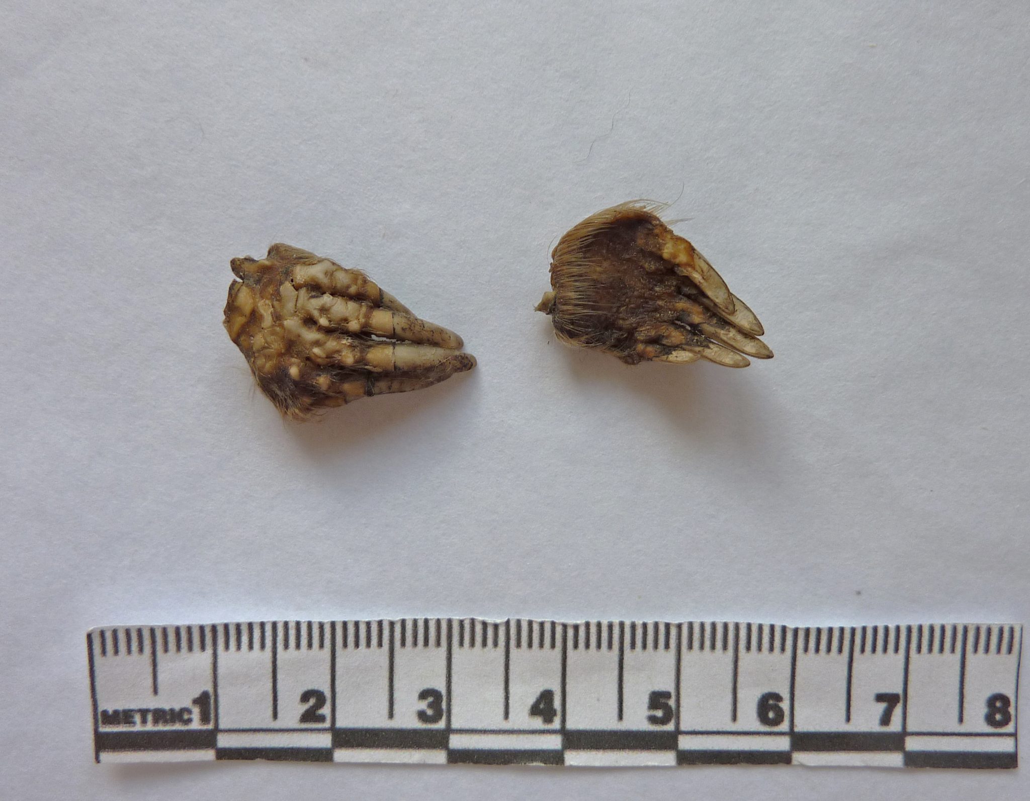 Set of moles' feet - originally 20 but two lost in 2004 flood.