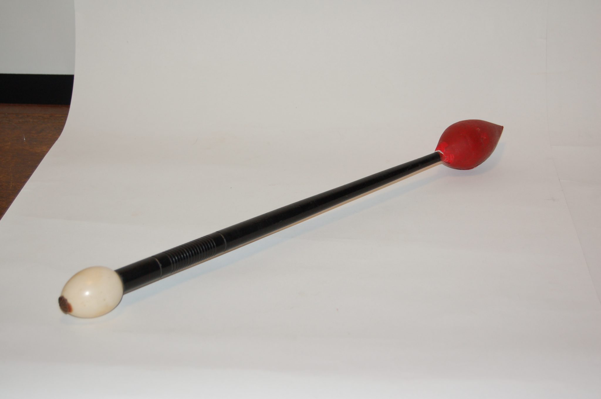 - A sceptre or wand consisting of a black rod with a white egg-shaped knob at one end and a red flower-bud-shaped knob at the other.