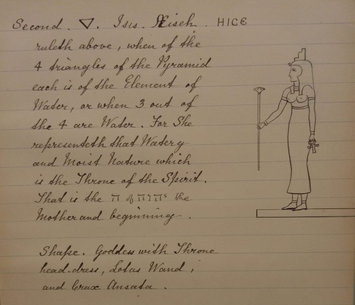 The above information can also be found in the handwritten manuscript in object 3923. Below is a page from the manuscript which shows Isis holding the Lotus Wand.