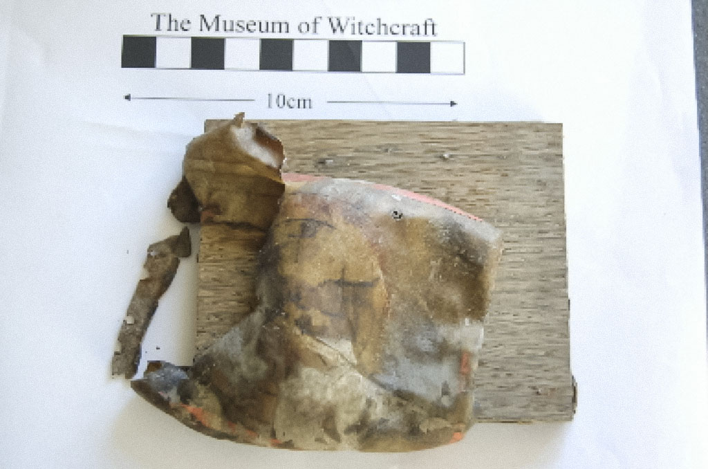 Very badly damaged in 2004 flood - the parchment has come away from the wood and is buckled and disintegrating, with most of the design illegible.