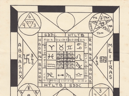 Made by Cecil Williamson, and found inside his copy of the 1889 edition of Mather's translation of The Key of Solomon (library no. 133.4 UNK 1680).