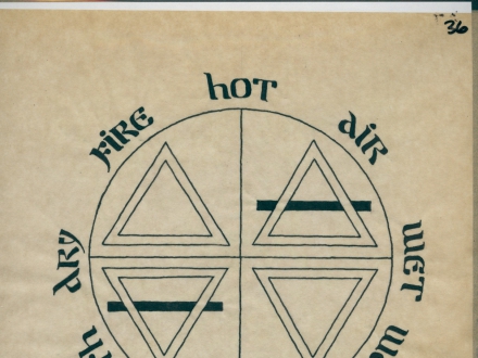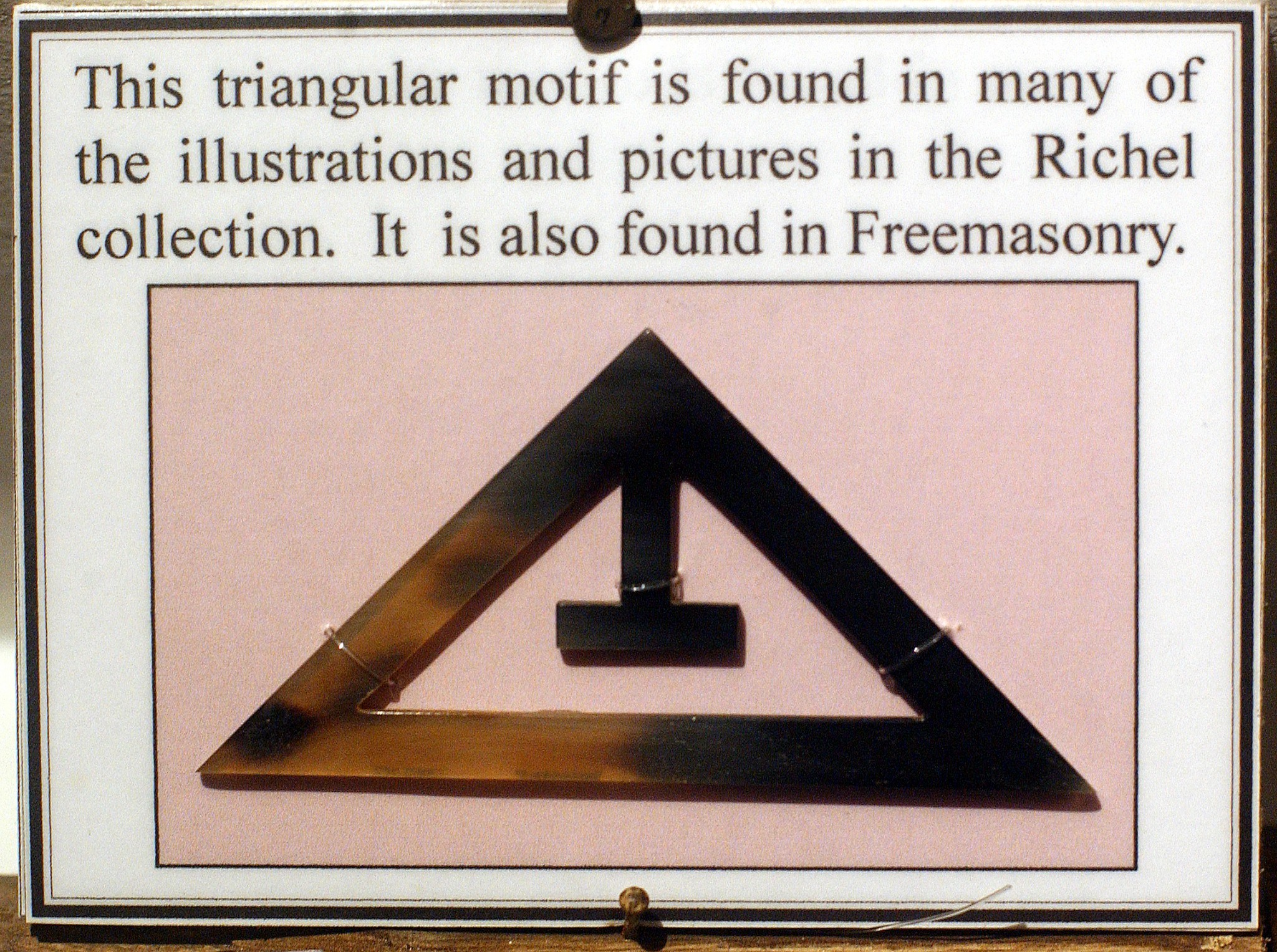 Triangle with ‘T’ shape inside. Possibly made of horn.