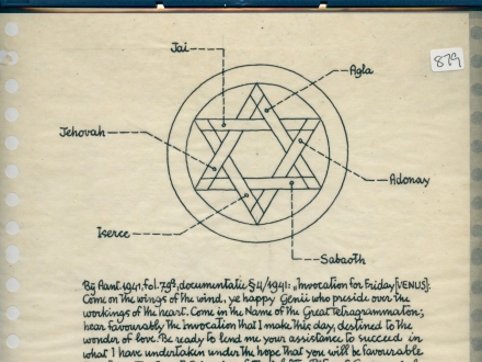 NO. AE-33-80, (Saday), The Rites of Ceremonial Magick, Aant. [notes] 1960, fol. 212s, § 12-16, documentatie H.B. Hinlopen/1928. (Marius Malchus, The Grimoire of T = The Secret Grimoire of Turiel, London, 1960 (The Aquarian Press). Fol. 212s, F7: Las Palmas, 1927, 1927 (naar Max Humber). H.