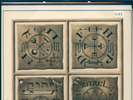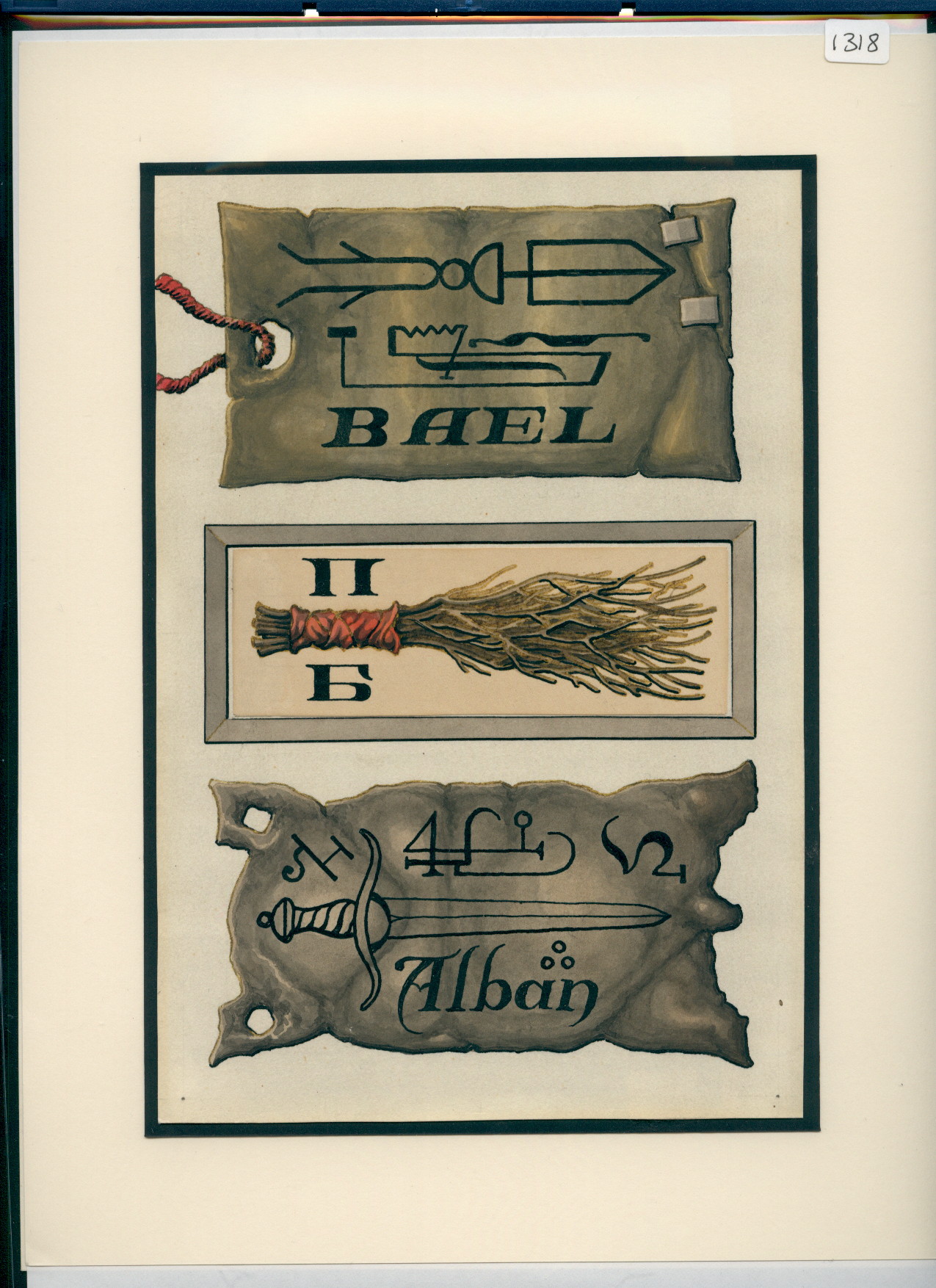 Angel names are Bael and Alban. In the middle a bunch of twigs with 2 Russian letters. This might have something to do with gnomes, see also R/10/1313-1323.