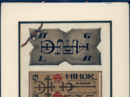 R/10/1318 – print of parchment (?) with angel names, dagger, sigils; and bunch of twigs