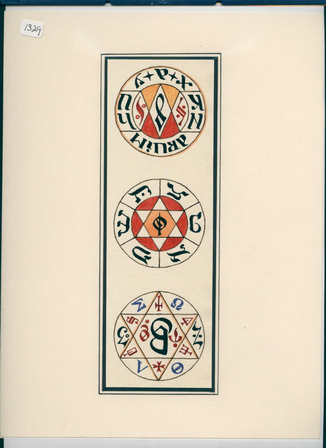 R/10/1329 – print of three circles with letters and hexagram
