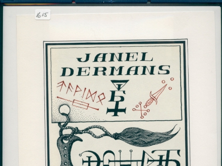The handle is decorated with dots, and exists of part ‘a’ and ‘b’. On the knife reads ‘agla’, a =, dots and a crescent, on the back4 symbols, including two ‘R’s. (see also R/1/123). Next to it a cross, a word (Obriel ?), a heart and three dots. ‘1775’.
