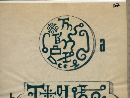 R/1/160 – Drawing of 2 hands holding a branch, a circle with symbols and a sigil