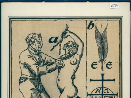 - Drawing of magic square of letters with a cross in it, other letters in a cross shape, alpha-omega
