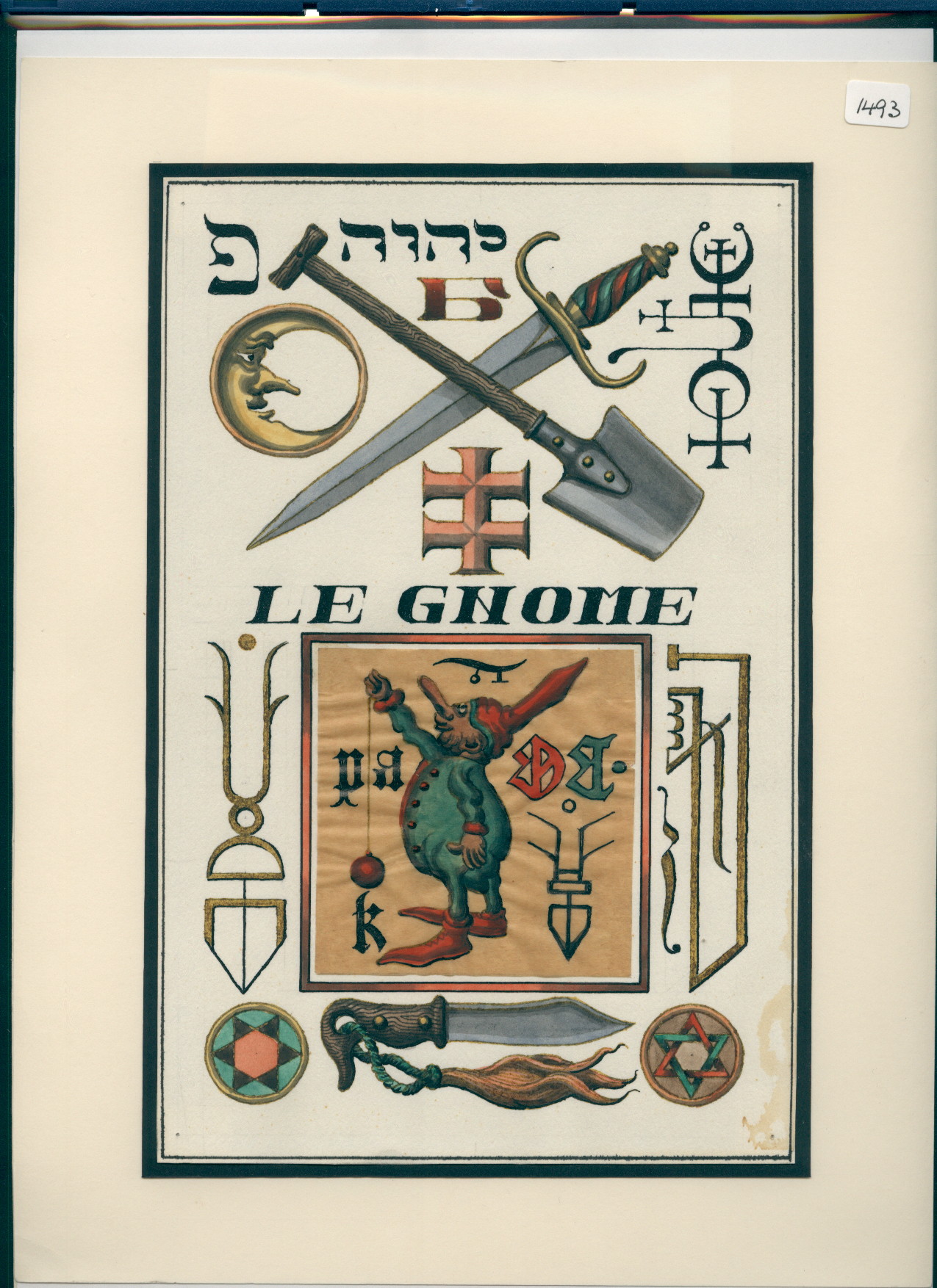 R/12/1493 – print of gnome, spade, sword, moon, knife and sigils