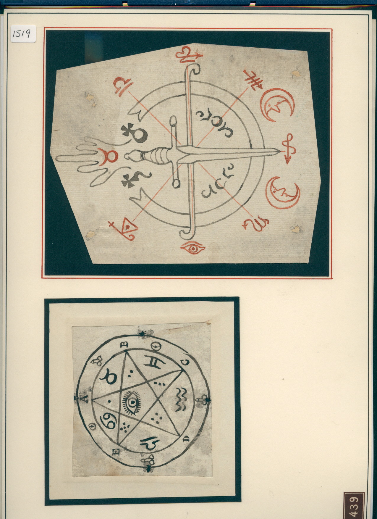 R/12/1519 – 2 prints; both a circle with sigils and signs, one with a sword
