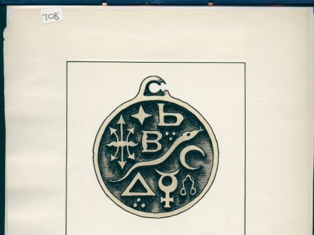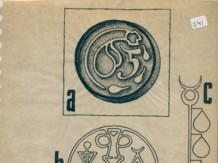 - Drawing of an unfolded cube, an amulet with phallus, a circle and an oblong object