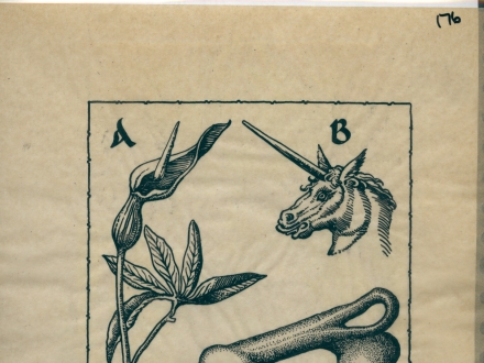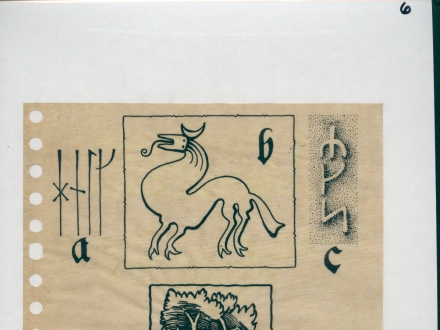 Then a frog with an unreadable letter but probably A, and two quite schematic trees; B and C.