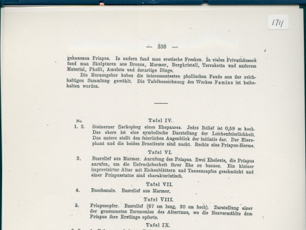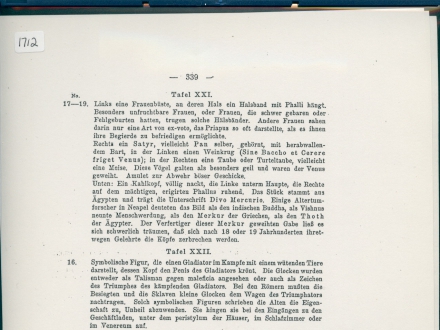 ‘Erklarungen zu den Bildertafeln’ [explanations of the image tables]. Article is R/15/1710 till R/15/1722. Images are R/15/1723 till R/15/1761, mostly on priapus-symbols.