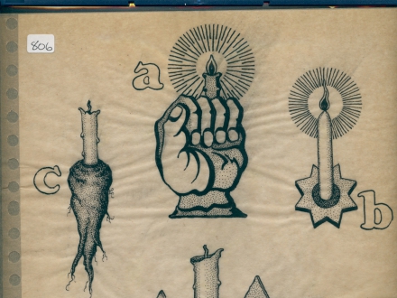 R/16/1948 – drawing of a mandrake-man, a coffin and nails