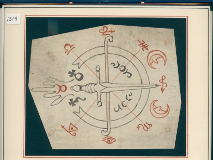 R/2/270 – drawing of a circle with sigils and symbols and a dagger