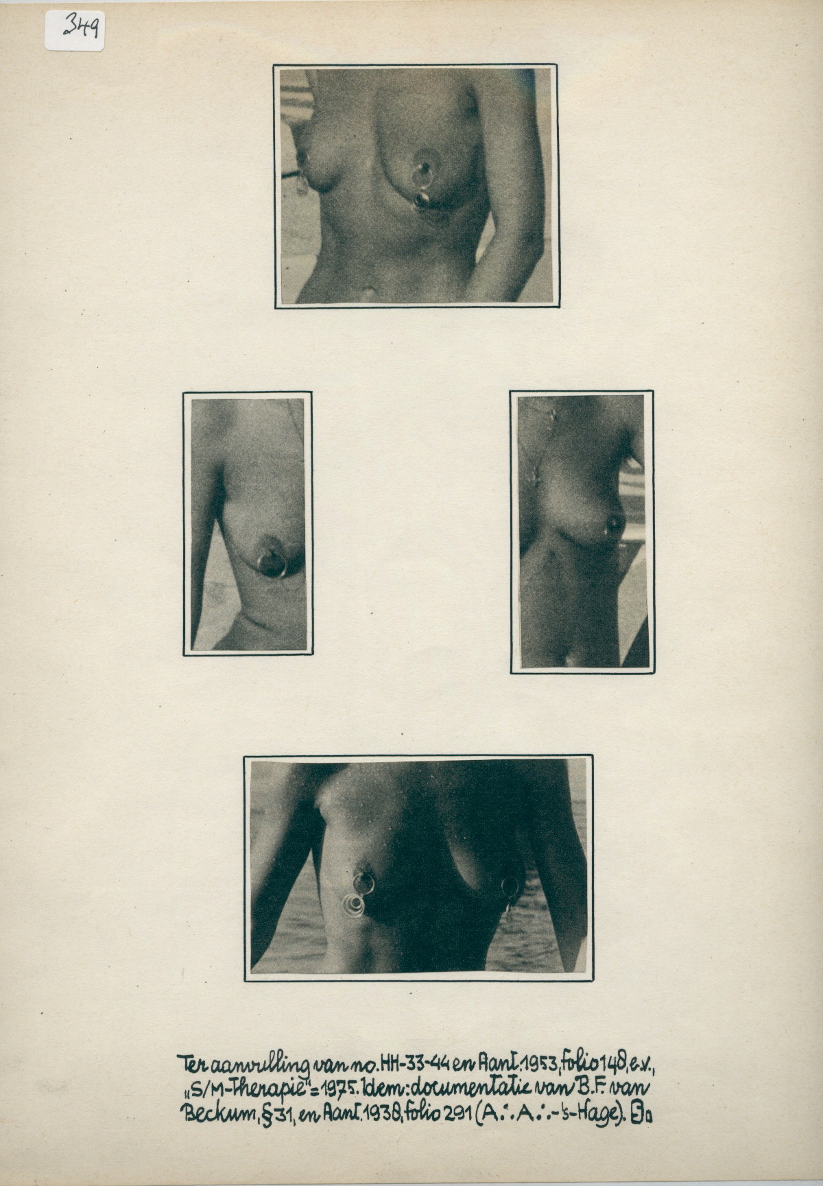 R/2/349 – four photo’s of pierced nipples; and notes