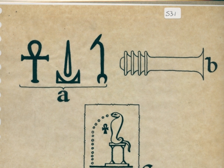 R/3/457 – Drawing of Egyptian figures, two crosses and a mano cornuta; and notes