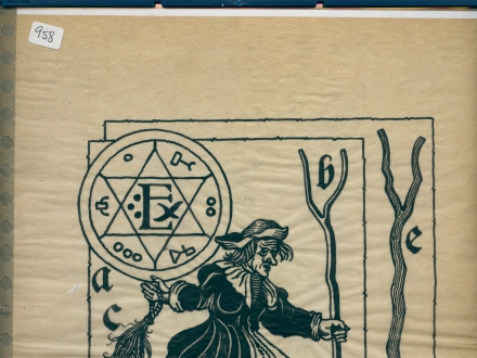 R/8/1075 – print of a woman, a circle, candle, broomstick; some notes